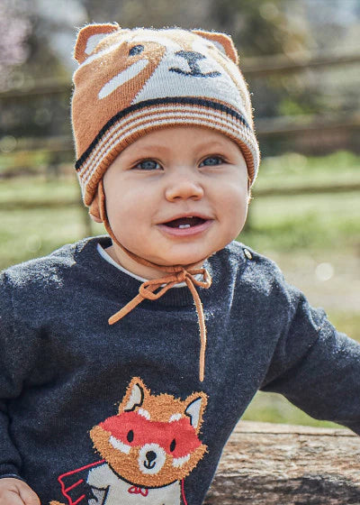 Este gorro tejido tipo tricot es el complemento ideal para los días frescos. Su diseño en tono "cacahuete" combina fácilmente con cualquier outfit, mientras que las orejitas decorativas le dan ese toque tierno que a todos encanta. Fabricado con materiales suaves y cómodos para cuidar la piel delicada de tu bebé.